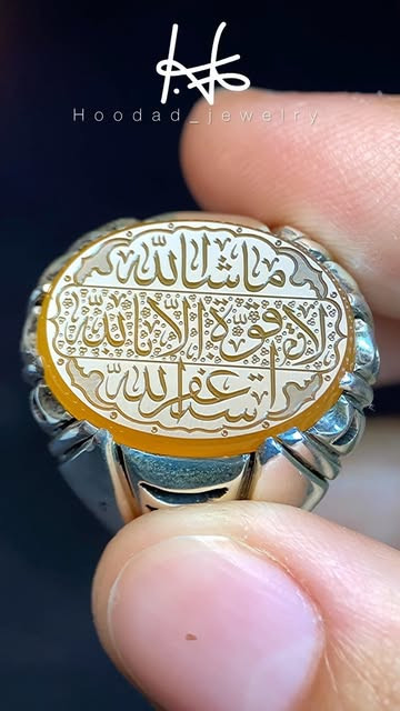 متاسفانه این کالا در حال حاضر موجود نیست. میتوانید از طریق لیست بالای صفحه، از محصولات مشابه این کالا دیدن نمایید.عقیق یمنی خوش رنگ زرد با حکاکی بسیار زیبای ذکر ماشاءالله لا قوه الا بالله استغفرالله ، منقش به امضاء«قمر» ابعاد سنگ ۱۶۲۱ رکاب دستساز سایز ۶۰