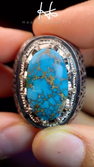 انگشتر فیروزه عجمی نیشابوری شناسنامه دار با رکاب دستساز اره کاری