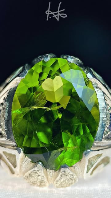 انگشتر زبرجد طبیعی با مخراج یاقوت کبود