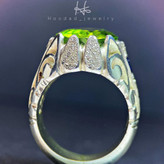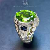 متاسفانه این کالا در حال حاضر موجود نیست. میتوانید از طریق لیست بالای صفحه، از محصولات مشابه این کالا دیدن نمایید.نوع سنگ: زبرجد صد در صد طبیعی و معدنی با مخراج یاقوت کبود سایز سنگ: ۱۴ وزن سنگ: حدودا ۲۰ قیراط عیار نقره: ۹۲۵ سایز رکاب: ۶۵ استاد سازنده رکاب: سادات