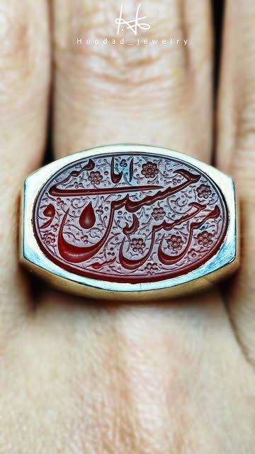 انگشتر عقیق یمنی سرخ حکاکی زیبا از استاد شه حسین