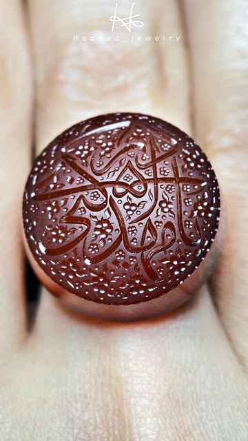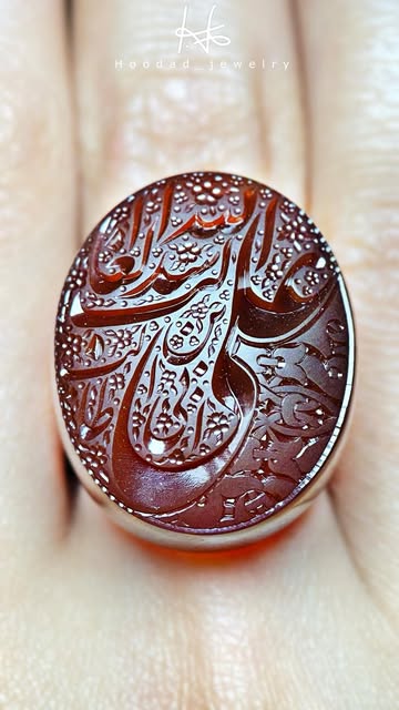عقیق یمنی پرتقالی خطی با حکاکی فاخر